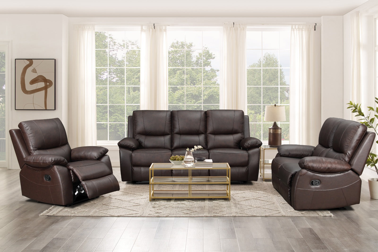 Galway 3 Seater Leather Manuel Recliner- Brown