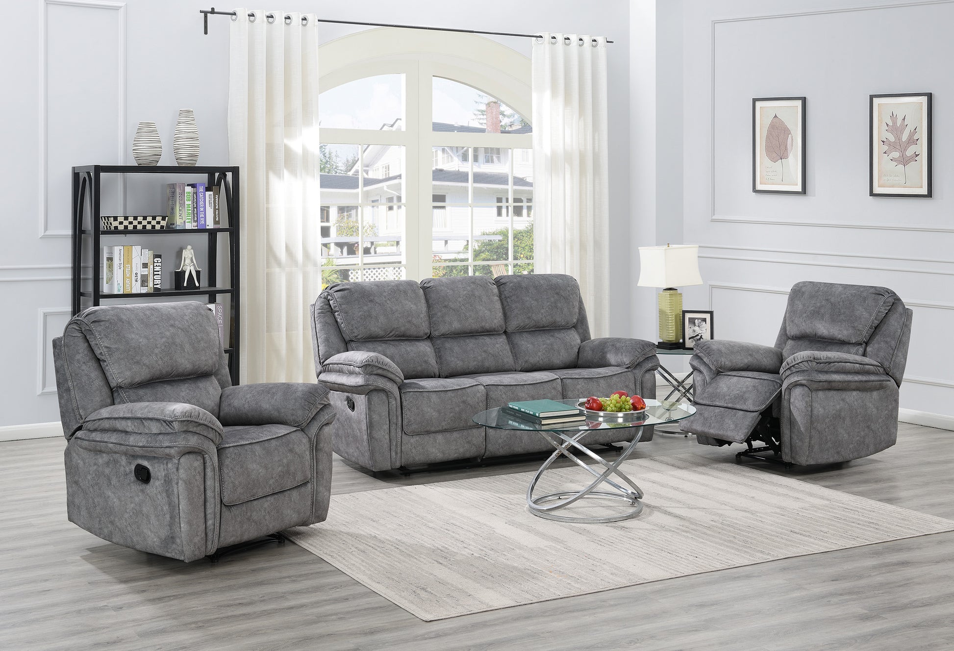 Grange 3 Seater Fabric Manual Recliner- Dark Grey