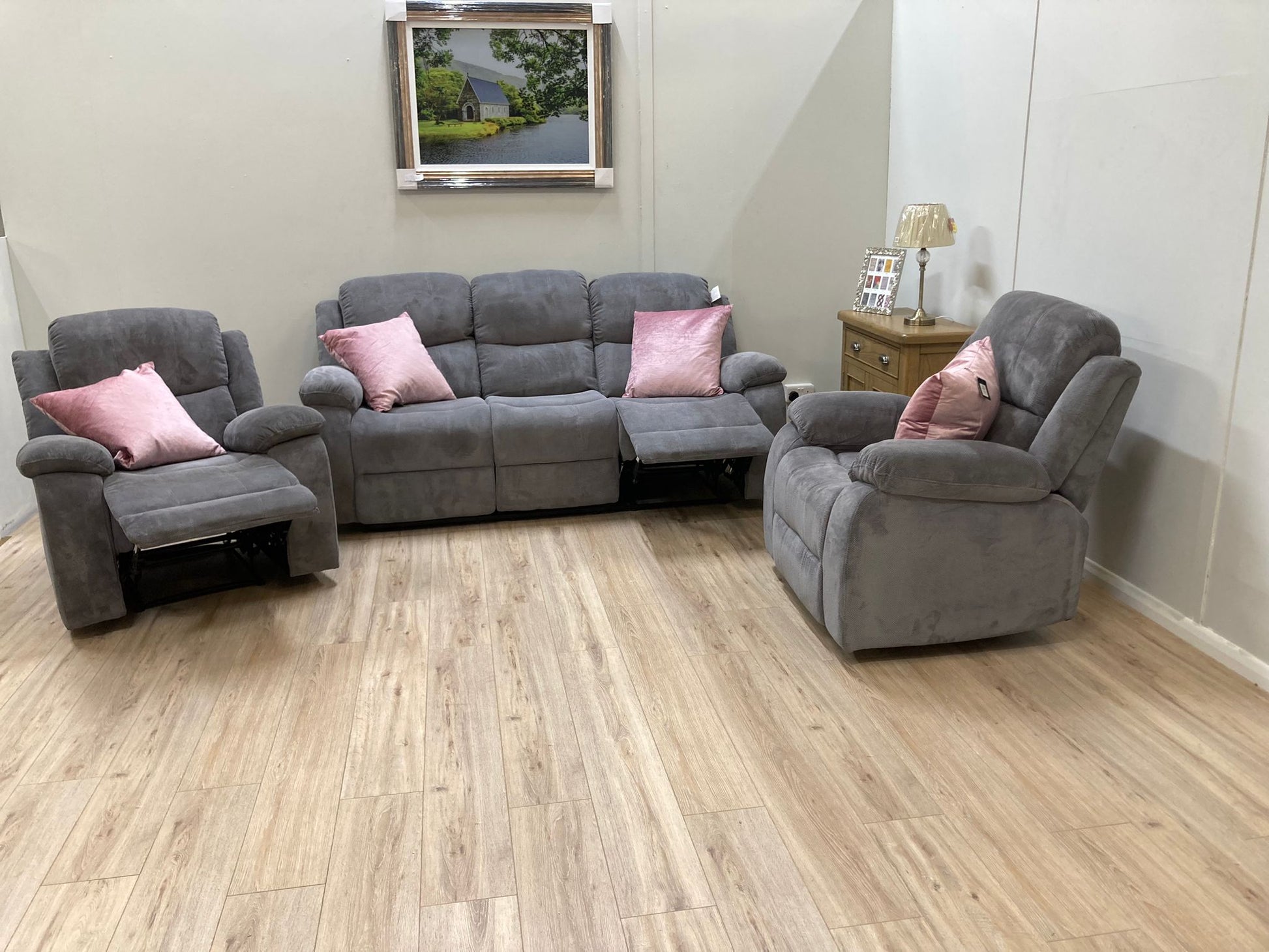 The sophisticated and contemporary New Jersey sofa reclining collection boasts a high back, reclining options, and a fabulous grey fabric with very clean and beautiful detailing. It is a fantastic and incredibly wonderful addition to any living space.