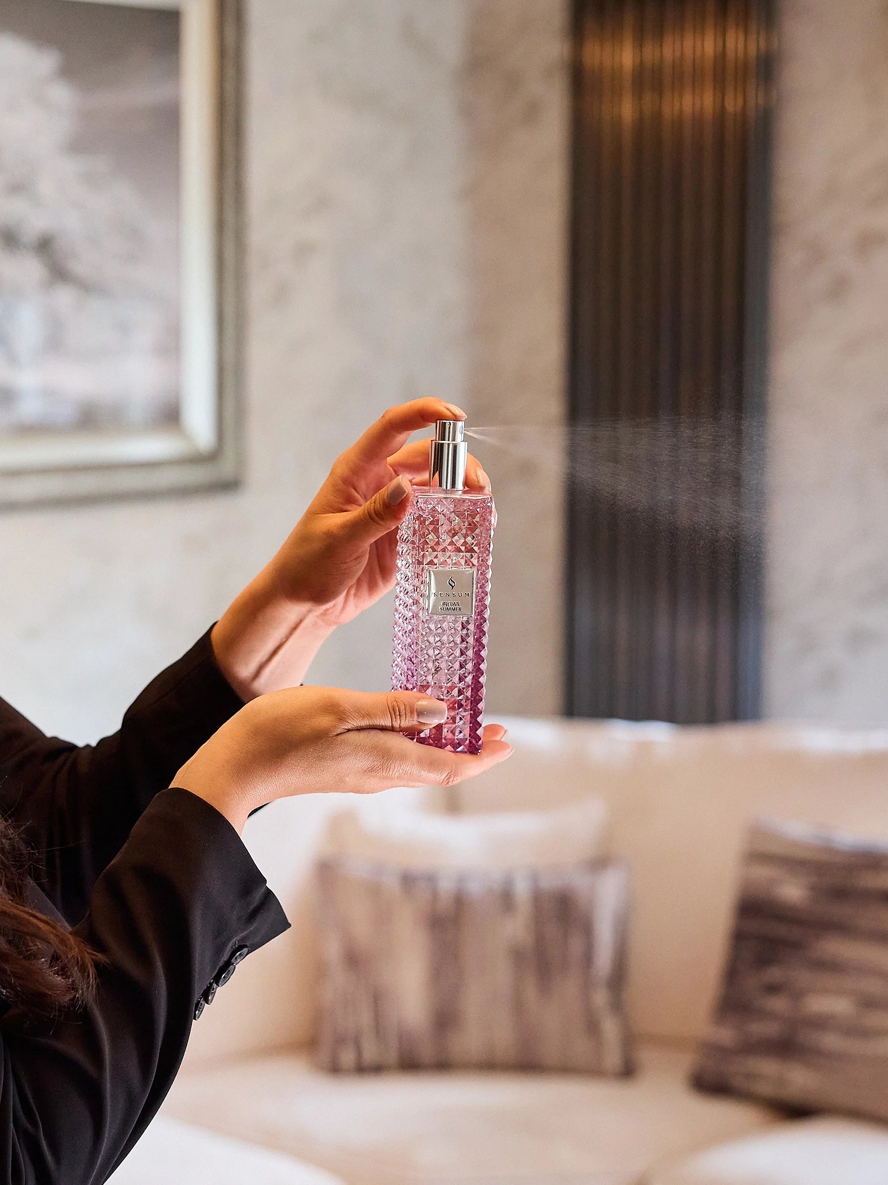 Experience the immediate warmth and exotic scent of Indian Summer with our Indian Summer Room Spray (150ml). This room spray offers a quick and convenient way to infuse your space with the luxurious blend of floral, musky, and sharp top notes, green, tropical, and spicy middle notes, and mild fruity wine, jasmine, and vanilla base notes. Enhanced with essential oil of eucalyptus, it’s perfect for creating a warm and inviting atmosphere on demand.