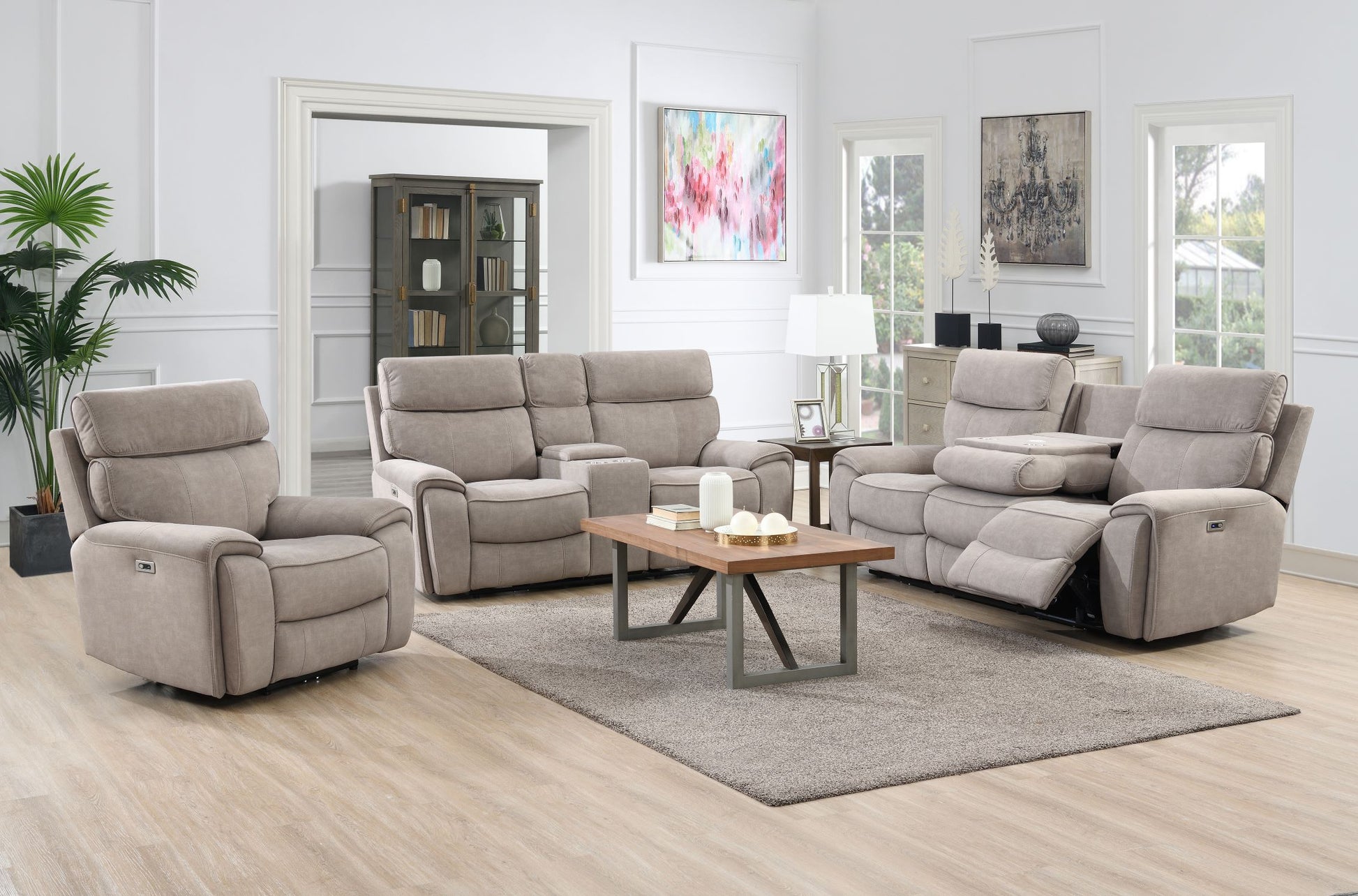 Springhill 2 Seater with Console Fabric Electric Recliner- Beige