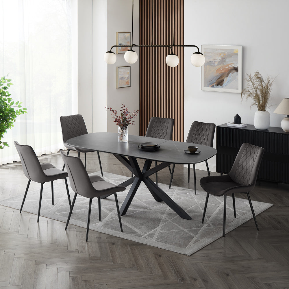 Vero Sintered Stone Ceramic Extending Table Dining Set with Dining Chairs